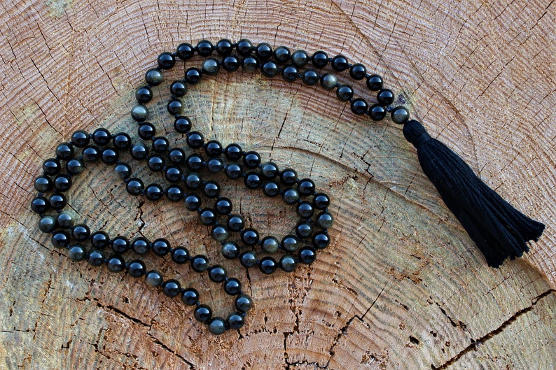 108 beads Hand-knotted Mala, Golden Obsidian- top quality beads, Handmade Tassel.